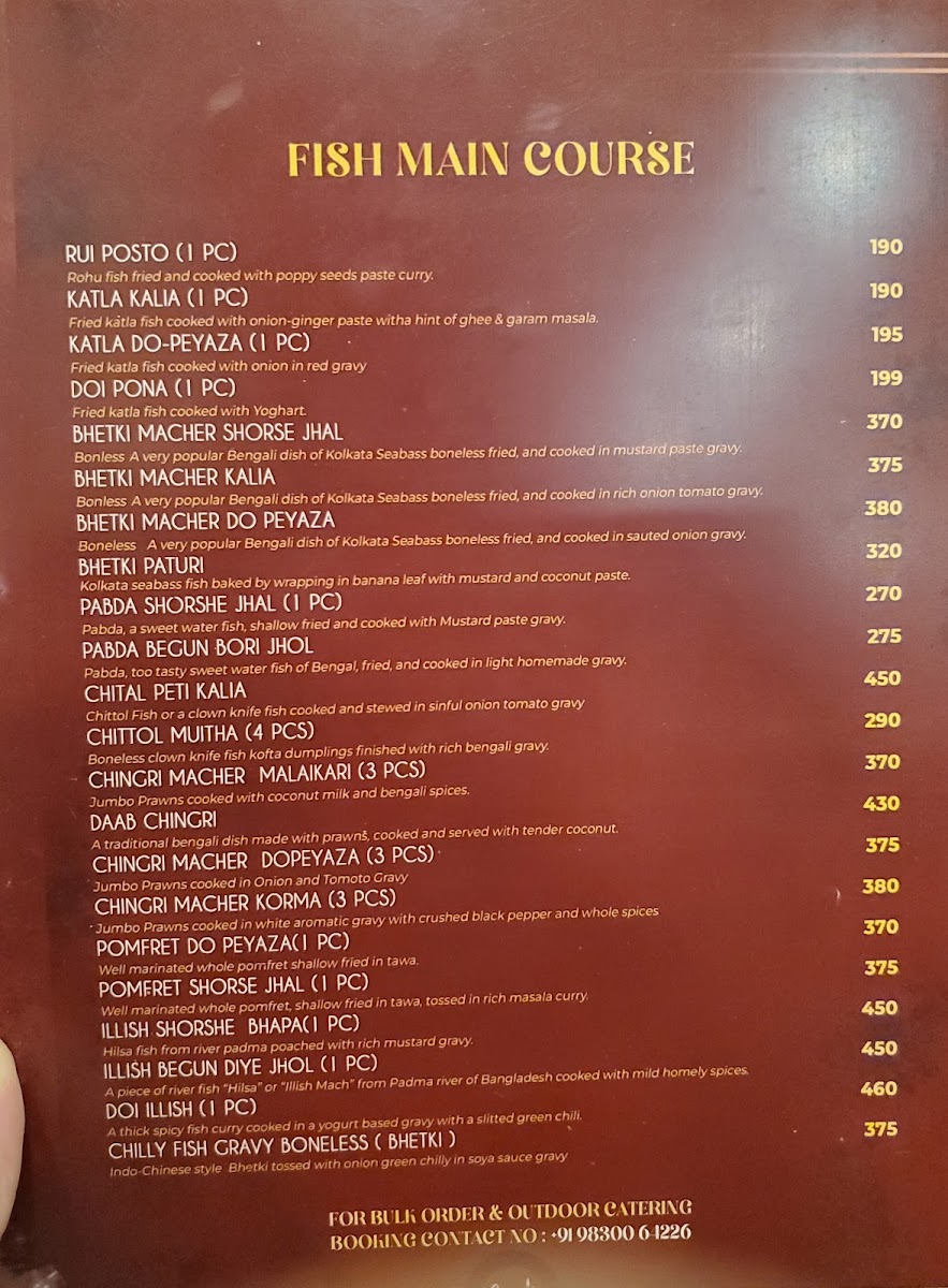 Let’s talk about the food. The menu offers a delightful array of authentic Bengali dishes that transport you straight to the coastlines and kitchens of Bengal. Signature items like the diamond bhetki fish fry are highlighted for their juicy, flavorful profile, while the mutton thali promises a hearty experience. One must not miss the kochu paata chingri bhaapa, a recommended dish that exemplifies the finesse of Bengali cooking. Yet, it’s worth noting that some dishes, like the Katla Kalia curry, could benefit from a touch of refinement, as noted by patrons seeking a consistent flavor profile.